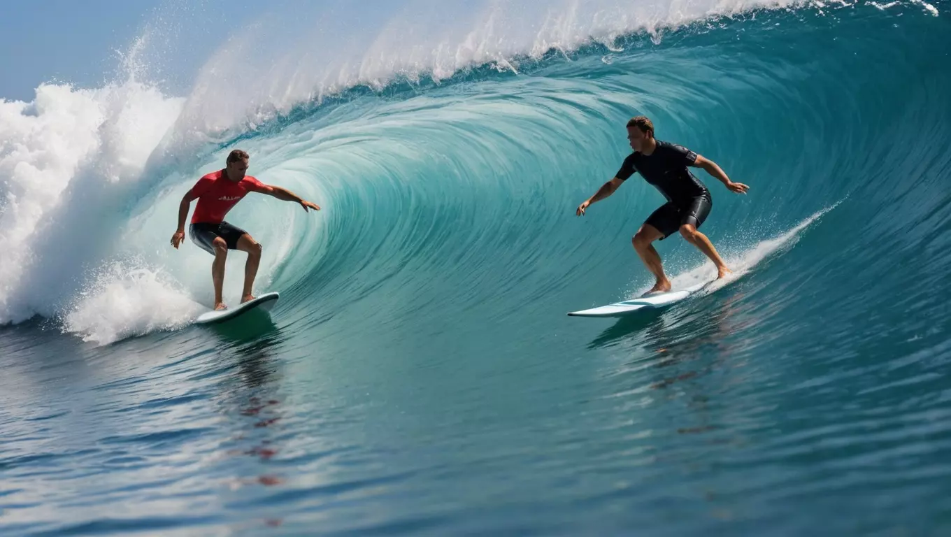 ท่ามกลางทักษะและความสุขอันน่าหลงใหล มีผู้พบเห็นนักเล่นเซิร์ฟสองคนล่องลอยไปตามคลื่นนอกชายฝั่งซานตาโมนิกา. การเคลื่อนไหวที่ราบรื่นของพวกเขาสะท้อนให้เห็นถึงสิ่งที่ดีเลิศของการโต้คลื่น — กีฬาที่ผสมผสานความสามารถทางกายภาพเข้ากับอ้อมกอดอันน่าตื่นเต้นของธรรมชาติ.