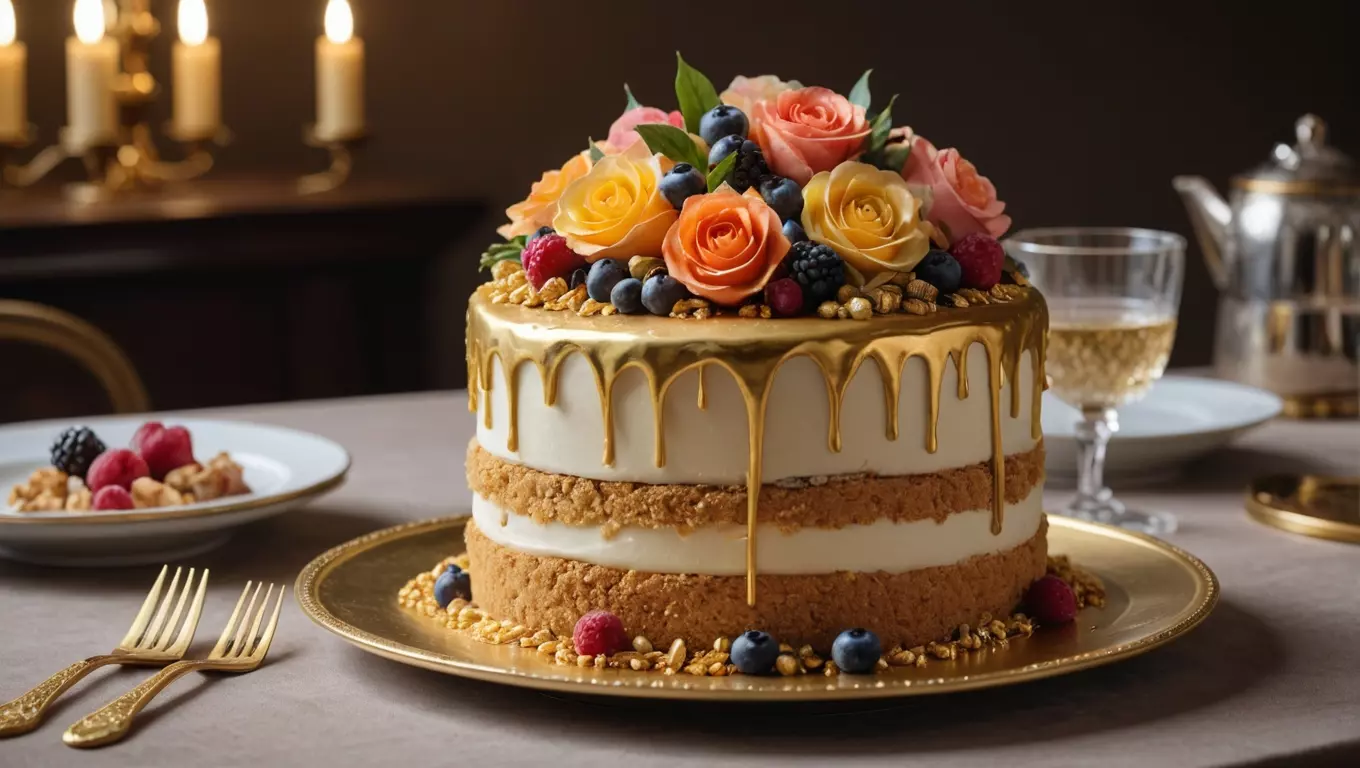 เค้กนี้ทําโดยใช้ส่วนผสมที่ดีที่สุด รวมถึงช็อคโกแลตหายาก เครื่องเทศแปลกใหม่ และแป้งระดับพรีเมียม. การออกแบบที่ซับซ้อนประดับด้วยทองคําเปลวที่กินได้และดอกน้ําตาลที่ทําด้วยมืออย่างพิถีพิถัน ทําให้ดูน่ารื่นรมย์.