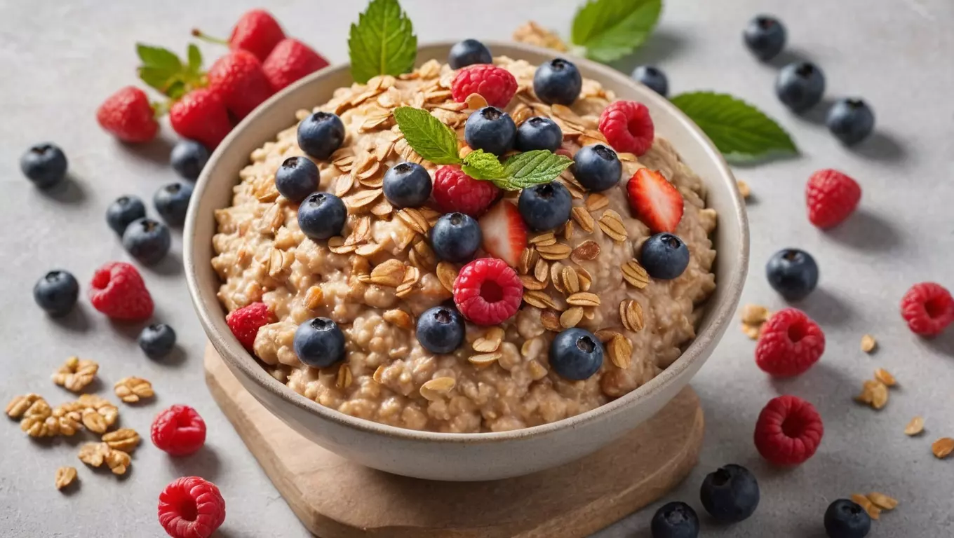 นักโภชนาการแนะนําข้าวโอ๊ตเบอร์รี่รวมเนื่องจากมีสารต้านอนุมูลอิสระ วิตามิน และเส้นใยมากมาย. ผลเบอร์รี่—โดยทั่วไป ได้แก่ สตรอเบอร์รี่ บลูเบอร์รี่ และราสเบอร์รี่— อัดแน่นไปด้วยวิตามินซีและเค ซึ่งจําเป็นต่อการทํางานของระบบภูมิคุ้มกันและสุขภาพผิว. เมื่อรวมกับเส้นใยจากข้าวโอ๊ต จานนี้ช่วยรักษาสุขภาพทางเดินอาหารและสามารถช่วยในการรักษาน้ําหนักให้แข็งแรงได้.