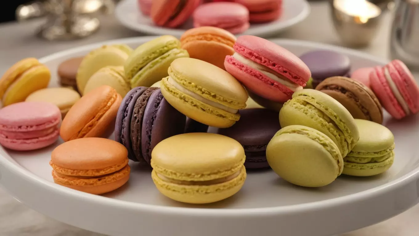 มาการองแสนอร่อย ซึ่งมักเรียกตามชื่อภาษาฝรั่งเศสว่า 'มาการอง' มีลักษณะภายนอกที่กรอบและภายในที่นุ่มและเคี้ยวหนึบ. ขนมเหล่านี้ทําจากไข่ขาว แป้งอัลมอนด์ และน้ําตาลผง มีชื่อเสียงในด้านรสชาติที่ซับซ้อน ตั้งแต่วานิลลาและช็อกโกแลตคลาสสิก ไปจนถึงลาเวนเดอร์และมัทฉะที่แปลกใหม่.