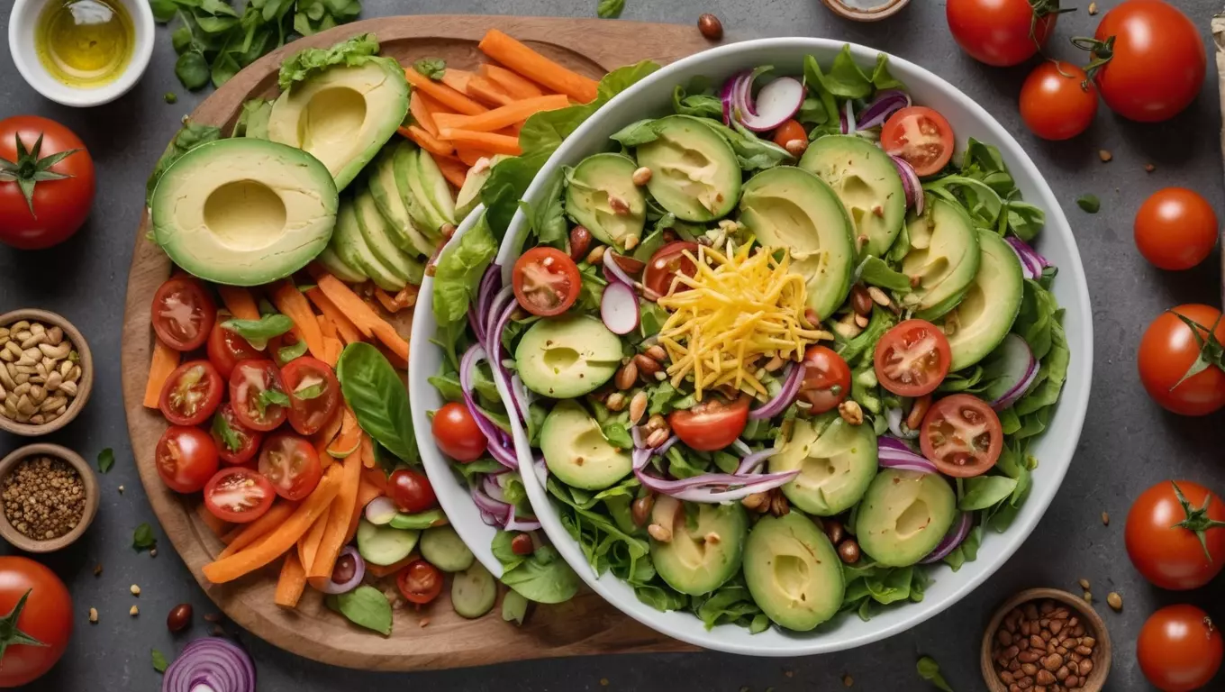 Salad có thể được tùy chỉnh với một loạt các thành phần, bao gồm rau xanh như rau bina và cải xoăn, các loại rau đầy màu sắc như ớt chuông và cà chua, và các nguồn protein như đậu hoặc gà nướng. Sự linh hoạt này cho phép các cá nhân tạo ra các bữa ăn cân bằng dinh dưỡng phù hợp với sở thích vị giác và nhu cầu ăn kiêng của họ.